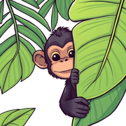 Add a dash of jungle curiosity to your space with this free printable art. A kawaii chimpanzee peeking from behind a leaf, easy to print at home.